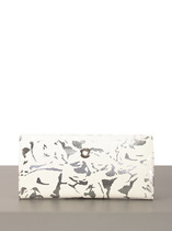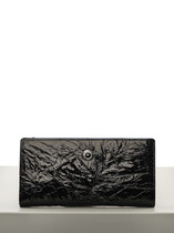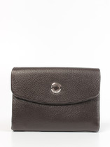 Кошелек женский выполнен из натуральной кожи. Детали: кошелек закрывается на магнитную кнопку, 2 отделения для купюр, 6 слот отделений для визиток или карт, 1 отделение с прозрачным окошком для карты или проездного, 2 кармана, 1 отделение на кнопке для монет. Фурнитура серебристого цвета. Упаковка: фирменная белая коробка.