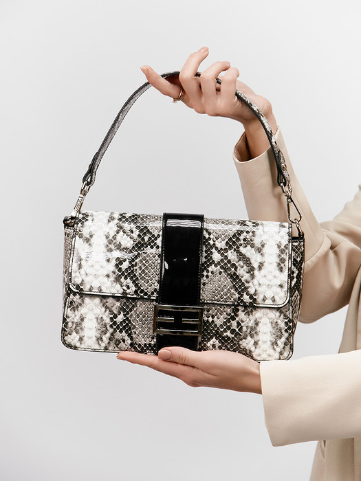 LACCOMA сумка 1891-змея черно белая натуральная кожа хлопок