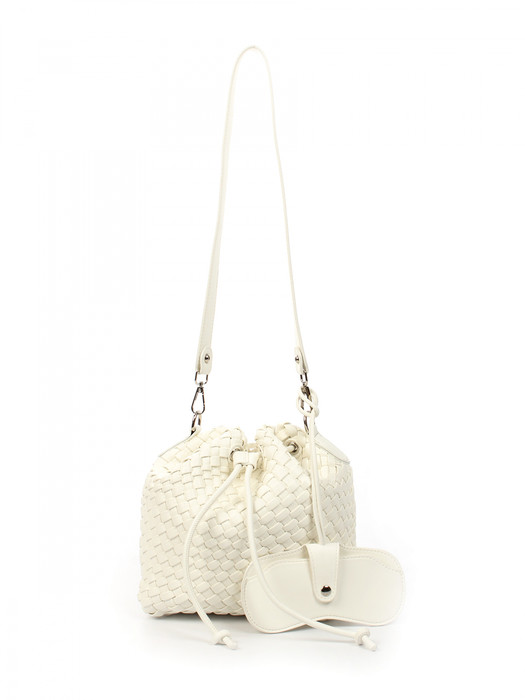 Сумка плетеная выполнена из экокожи. Детали: 1 ручка 70 см, 1 регулируемая ручка от 110 см до 125 см. Сумка имеет 1 отделение, закрываемое на стяжку. Металлическая брендированная фурнитура серебристого цвета. В комплекте фирменный пыльник для хранения сумки, чехол для очков, косметичка. Внутри косметички: 1 отделение на молнии, 1 карман на молнии, 1 открытый карман. Особенности косметички: брендированная подкладка из хлопка, брендированная фурнитура серебристого цвета.