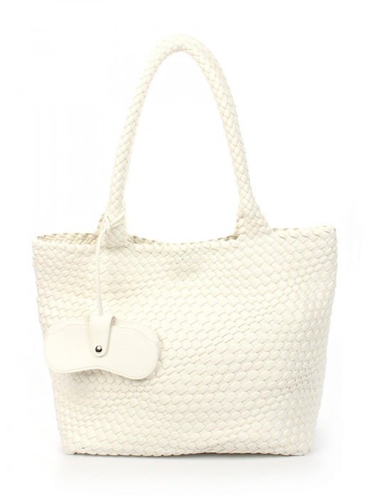 Сумка плетеная выполнена из экокожи. Детали: 2 ручки 60 см. Сумка имеет 1 отделение, закрываемое на магнит. В комплекте фирменный пыльник для хранения сумки, чехол для очков, косметичка. Внутри косметички: 1 отделение на молнии, 1 карман на молнии, 1 открытый карман. Особенности косметички: брендированная подкладка из хлопка, брендированная фурнитура серебристого цвета.