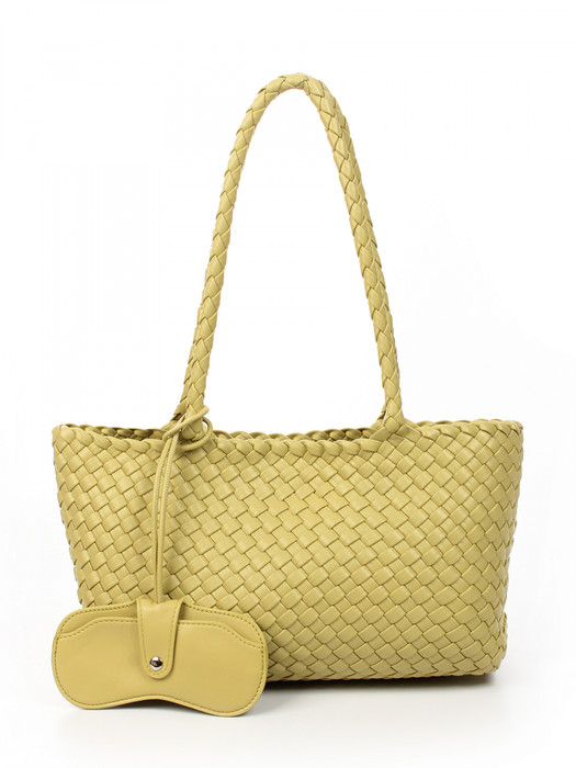 Сумка плетеная выполнена из экокожи. Детали: 2 ручки 60 см. Сумка имеет 1 отделение, закрываемое на магнит. В комплекте фирменный пыльник для хранения сумки, чехол для очков, косметичка. Внутри косметички: 1 отделение на молнии, 1 карман на молнии, 1 открытый карман. Особенности косметички: брендированная подкладка из хлопка, брендированная фурнитура серебристого цвета.
