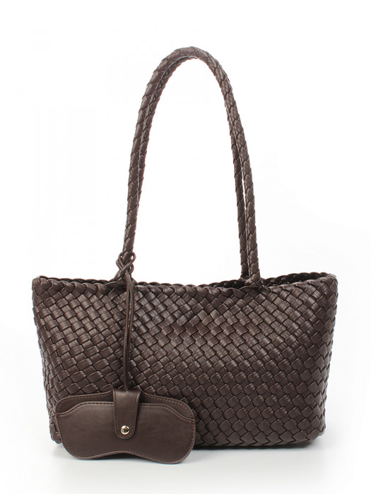Сумка плетеная выполнена из экокожи. Детали: 2 ручки 60 см. Сумка имеет 1 отделение, закрываемое на магнит. В комплекте фирменный пыльник для хранения сумки, чехол для очков, косметичка. Внутри косметички: 1 отделение на молнии, 1 карман на молнии, 1 открытый карман. Особенности косметички: брендированная подкладка из хлопка, брендированная фурнитура серебристого цвета.