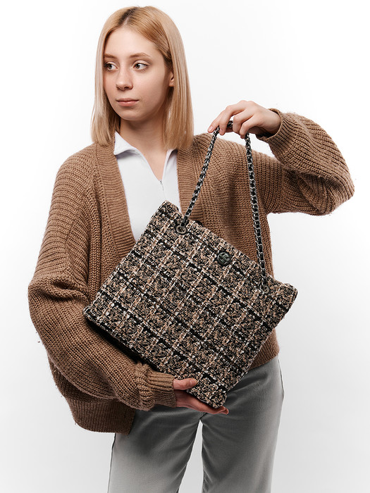 Сумка женская выполнена из экокожи с текстилем. Детали: 2 короткие ручки по 55 см. Внутри изделия: 1 отделение на молнии, 1 карман для документов на молнии, 1 открытый карман. Брендированная подкладка из хлопка. Металлическая брендированная фурнитура серебристого цвета. В комплекте фирменный пыльник.