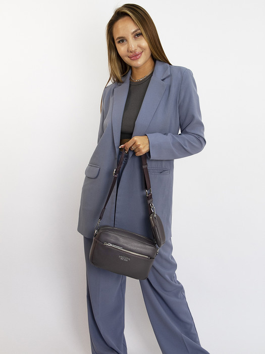 Сумка женская выполнена из эко кожи. Детали: 1 регулируемая ручка 125см. Внутри изделия: 1 отделение на молнии, 1 карман на молнии, 1 карман открытый. Снаружи изделия: 1 карман на оборотной стороне на молнии, 1 карман на молнии спереди изделия. Металлическая брендированная фурнитура серебристого цвета. В комплекте фирменный пыльник.