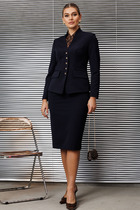 Элегантный женский комплект - двойка: блузон, брюки.Блузон прямого силуэта с разрезами по боковым швам.Застёжка - отрезная планка с петлями и пуговицами. Воротник рубашечный на отрезной стойке.По переду вставка из отделочного материала. По спинке кокетка и талевые вытачки.Брюки классические, зауженные к низу, с нормальной высотой сидения, комфортной посадки, на обтачке.Длина блузона по спинке 84 см. Длина рукава - 25 см. Длина брюк по боковому шву 102 см.