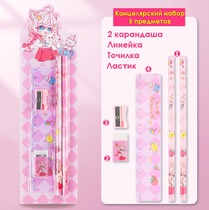Детский канцелярский подарочный набор из 5 предметов Розовый АНИМЕ
