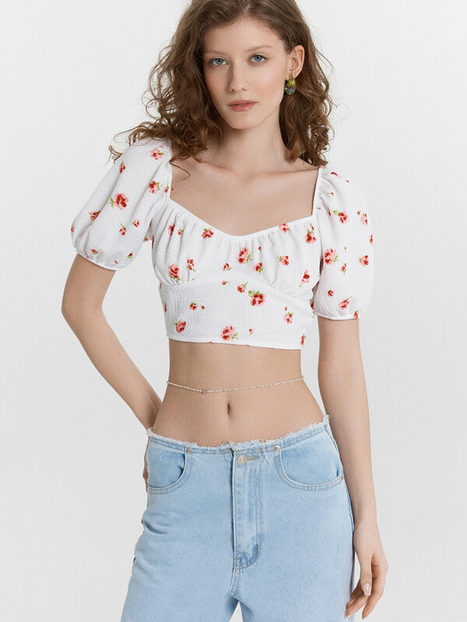 Этот женский укороченный топ — воплощение изящности и нежности, созданный для стильных и легких образов. Короткие объемные рукава, обработанные эластичной тесьмой, добавляют романтичности и воздушности, а глубокий вырез горловины с изящной сборкой подчеркивает женственность. Отрезной лиф и сборка под грудью создают красивый силуэт, который гармонично дополняется глубоким вырезом на спинке. Нижний край обработан швом вподгибку с эластичной тесьмой, что обеспечивает идеальную посадку. Изделие выполнено из ткани рашель — материала, отличающегося легкостью, мягкостью и элегантной текстурой. Этот топ идеально подойдет для стильных летних образов, вечерних выходов или романтичных встреч, даря комфорт и красоту в каждом движении.