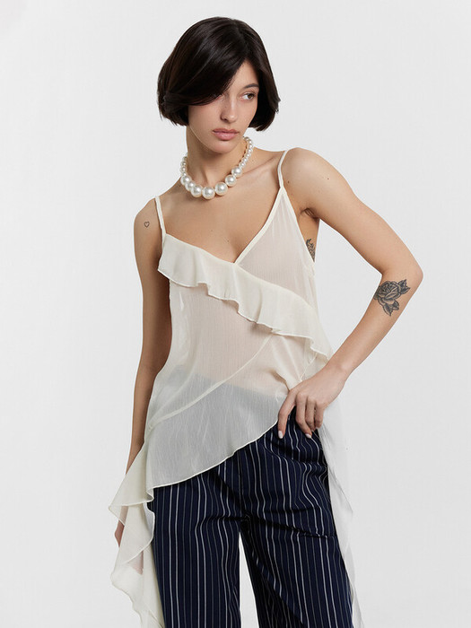 Эта стильная новинка в весенне-летней коллекции — воплощение легкости и трендового дизайна! Асимметричный крой придает модели динамичность и оригинальность, создавая непринужденный, но эффектный силуэт. Свободный фасон обеспечивает комфорт и воздушность, а V-образный вырез подчеркивает элегантность и утонченность образа. Тонкие бретели делают изделие легким и женственным, а изящные оборки добавляют романтичность и игривость, подчеркивая плавность линий. Модель выполнена из струящегося материала, который красиво ложится по фигуре, создавая ощущение свободы и легкости. Такой дизайн идеально подходит для стильных летних образов, подчеркивая индивидуальность и акутальные акценты сезона. Этот трендовый топ легко комбинируется с аксессуарами, обувью и верхней одеждой, позволяя создавать уникальные и выразительные луки. Безупречное сочетание утонченности, комфорта и свежего взгляда на стиль!