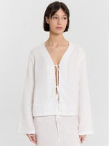Блузка прямого силуэта. Горловина V-образной формы. Центральная застежка на завязки. Борта обработаны подбортами. Рукава втачные длинные, свободные. Плечо спущено. Нижний срез блузки и рукавов обработан швом вподгибку.