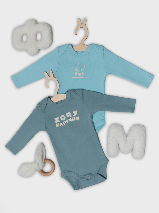 Совместные покупки Курган Детская одежда Боди, ползунки и прочее — Mark Formelle БОДИ ДЕТСКОЕ (2ШТ.) 13016-2 13016-2 сланец +пыльная бирюза +печать