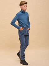 Брюки для мальчиков. Без бокового шва. Карманы в вытачке. Пояс отрезной с внутренней эластичной тесьмой 50RV. Пояс прострочен двумя отделочными строчками. Внутри в пояс втянут шнур    8 PX-2 . Низ брюк обработан манжетами из рибаны.