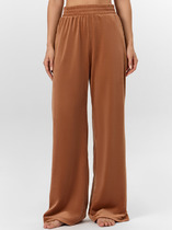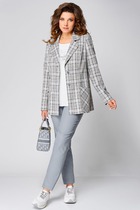 Брюки женские прямого силуэта из ткани. На деталях переда карманы с отрезным бочком. Пояс отрезной состоит из двух частей, задняя часть пояса присборена на резинку. Посадка средняя.