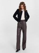 Брюки прямые, свободные. Посадка средняя, сидение опущено. Пояс цельнокроеный с эластичной