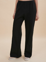 Черные женские брюки прямого свободного кроя сочетают в себе повседневный комфорт и изысканную деталь. Модель со средней посадкой дополнена изящным декоративным элементом по верхнему срезу — тонкой текстильной вставкой, стилизованной под край нижнего белья. Эта деликатная деталь придает образу игривую нотку и особый шарм, оставаясь при этом тактично скрытой под одеждой.