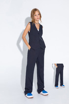 Посадка брюк средняя. Пояс цельнокроеный с эластичной тесьмой внутри. Низ брюк обработан в подгибку.