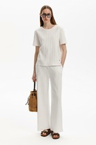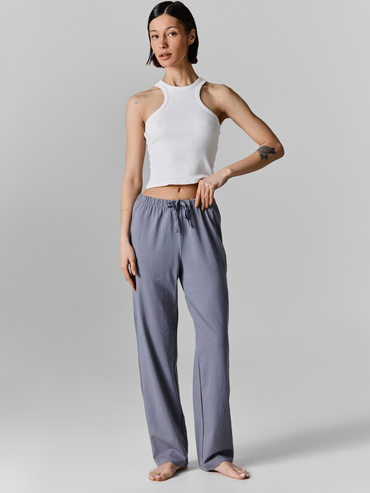 Брюки прямого силуэта, немного заужены к низу. Пояс цельнокроеный с резиной внутри 30RV. По центру пояса пробиты петли, протянута хб тесма 10мм. Низ брюк обработан в подгибку.