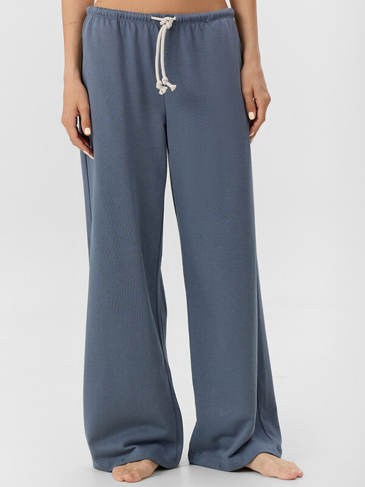 Брюки с посадкой на талии свободного силуэта. Пояс цельнокроеный с резиной внутри 20RV. По центру пояса пробиты петли, протянут шнур кругловязанный 5 мм 5KXWC-1. В боковых швах карманы. Низ изделия застрочен швом в подгибку.