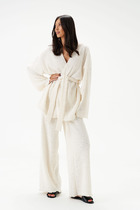 Брюки женские свободного силуэта из трикотажного полотна «под кожу». Пояс отрезной из основного полотна с эластичной тесьмой внутри (20мм 20RV). На передних деталях обработаны карманы-хулиганы. Подкладка кармана из подкладочной ткани. На правой передней половинке проложена декоративная строчка - имитация гульфика. Нижние срезы брюк подклеены.