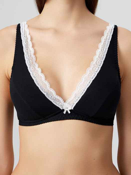 Повседневный хлопковый бюстгальтер. Благодаря тонким дубляжным чашкам и отсутствию каркасов практически не ощущается на теле. Узкое эластичное кружево на срезе декольте делает модель очень женственной.