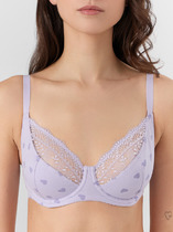 Бюстгальтер женский с мягкими чашками, на каркаса, выполнен из эластичной сетки. Чашка с вытачкой. Верхний срез чашки обработан ловаблем. Чашка декорирована протяжкой из декоративной эластичной тесьмы. Протяжка с бретелью крепится через кольцо.