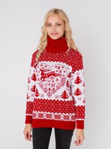 ESENIA Водолазка женская полушерстяная Олени - Красный