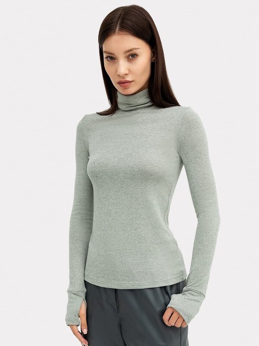 Женский джемпер облегающего силуэта, созданный из легкой и нежной вискозы с небольшим добавлением полиэстера.  Вырез круглой формы, с отложенным воротником-стойкой. Рукава длинные, прилегающие. Изюминка джемпера – удлиненные манжеты с прорезью для пальца. Идеально для прохладной погоды!