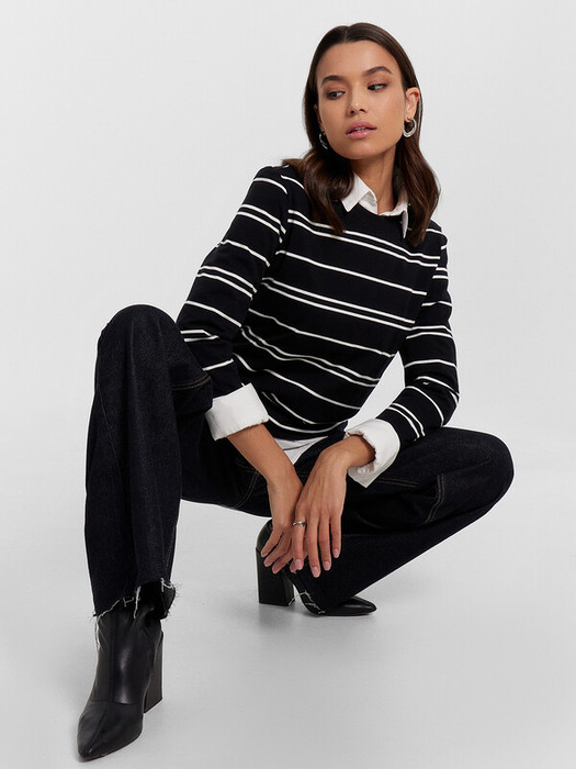 Совместные покупки Курган Женская одежда Джемперы, свитеры, водолазки — Mark Formelle ДЖЕМПЕР ЖЕНСКИЙ 122867 122867 белая полоска на черном1 1050