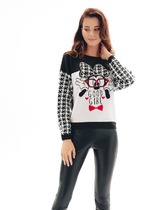 Джкмпер изготовлен из трикотажного эластичного полотна сетки. Джемпер облегающего силуэта длиной до середины линии бедер. Горловина округлой формы окантована бейкой  из основного полотна. Рукава втачные длинные.