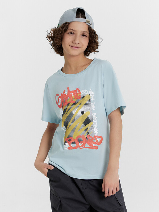 Футболка верхняя прямого силуэта. Перед и спинка цельнокроенные. Рукава втачные короткие. Линия плеча спущена. Горловина круглой формы, обтачка из трикотажного полотна рибаны 1*1. Шов втачивания рибаны по спинке закрыт бейкой из основного полотна. Низ футболки и рукавов обработан на 2-х игольной плоскошовной машине швом в подгибку.