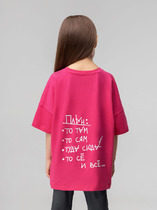 Футболка прямого силуэта. Перед и спинка цельнокроеные. Рукава втачные короткие. Нижние срезы рукавов с отворотами. Горловина круглой формы, обтачка из основного полотна. Шов притачивания обтачки закрыт бейкой из основного полотна. Низ изделия обработан на 2-х игольной плоскошовной машине швом в подгибку.