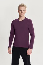 Нижние срезы футболки и рукавов обработаны швом вподгибку.