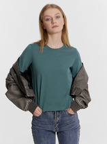 Укороченная хлопковая футболка из полотна кулирка. Силуэт свободный, оверсайз. Горловина круглой формы. Плечо спущено, пройма углублена – это делает движения максимально комфортными. Рукава длиной до локтя или чуть выше. Стильная модель!