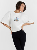 Футболка женская свободного силуэта из трикотажного кулирного пототна. Горловина круглой формы, с широкой обтачкой из рибаны. Плечо спущено, пройма углублена. Рукав втачной, длиной по локоть. Подгибка низа и рукавов широкая.