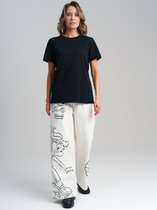 Футболка прилегающего силуэта, укороченная. Горловина круглой формы с обтачкой из основного полотна. Рукава втачные короткие, с отрезными манжетами. Нижний срез обработан швом вподибку.