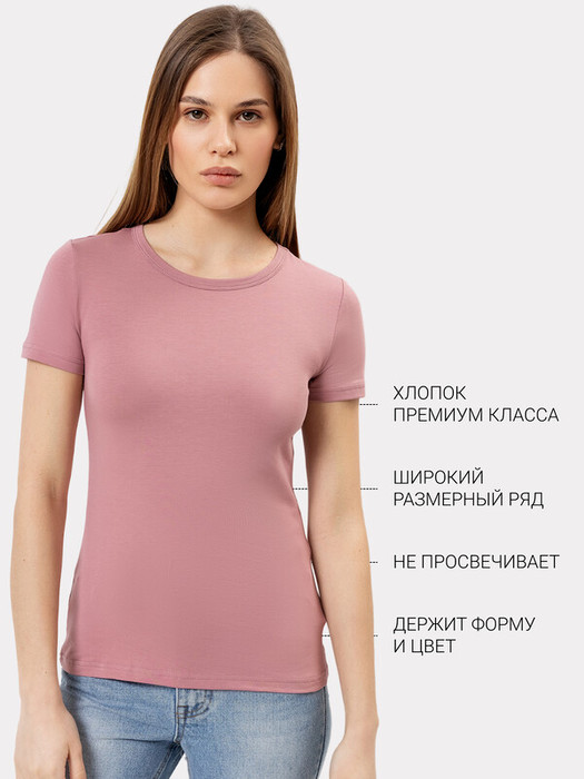 Спортивная футболка прилегающего силуэта классической длины. В составе полотна –  натуральный хлопок и немного эластана. Горловина круглая, рукава короткие. Отличный вариант футболки для спорта, домашних дел и прогулок!