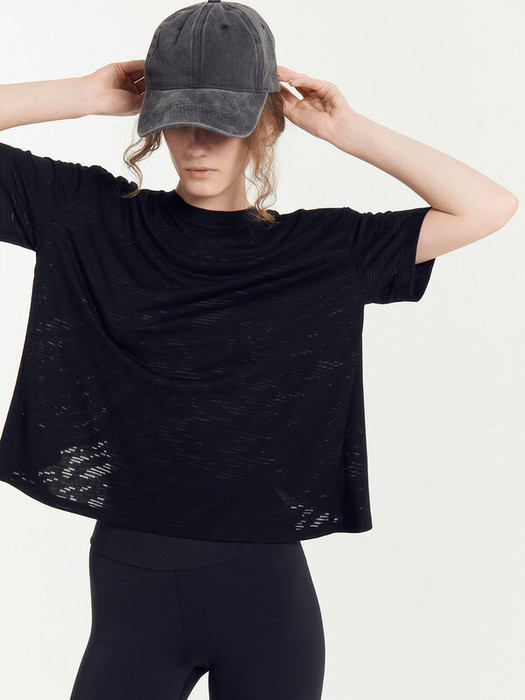 Нижний срез футболки и рукавов обработан швом вподгибку.