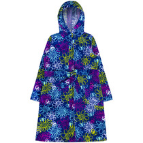 Халат для девочек, для отдыха изготовлен из велюра. Силуэт прямой, длина ниже коленей. Халат с запахом, с капюшоном, с съемным поясом, продетым в шлевки в боковых швах. Концы пояса свободно завязываются. В боковых швах обработаны карманы. Рукава длинные с манжетами, втачены в открытые проймы. Спинка цельнокроеная. По срезам борта и капюшона притачена планка. Низ изделия застрочен на 2-хигольной плоскошовной машине. По срезу втачивания капюшона настрочена тесьма и вешалка из бейки из велюра.
