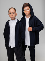 Худи для девочек, свободного силуэта (оверсайз), с капюшоном. Горловина округлой формы. Капюшон со средним швом, на подкладке из основного полотна. Плечо спущено, рукав втачной длинный. По низу рукава отрезная манжета из рибаны. Пояс отрезной из рибаны, отстрочен.