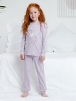 Уютный комплект для девочек, состоящий из джемпера с длинными рукавами и брюк. Джемпер свободного силуэта. Перед и спинка цельнокроеные. Горловина круглой формы из основного полотна. Рукава втачные, низ рукавов с притачными манжетами. Брюки прямые, с притачными манжетами. Пояс с эластичной тесьмой, которая обеспечивает отличную посадку. Стильная и комфортная детская пижама — лучший вариант для прохладного времени года. Широкий размерный ряд, красивые расцветки моделей в линейке. Рекомендуем!