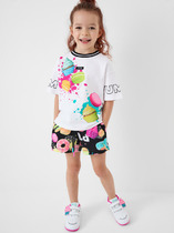 Легкий и привлекательный комплект из трикотажной кулирки. Включает необычную футболку и мини-шорты. Футболка прямого силуэта, длиной до середины ягодиц, с круглой горловиной и необычными короткими рукавами, украшенными рюшами. Шорты короткие, с боковыми карманами и эластичной резиной в поясе. наверняка понравится вашей девочке!