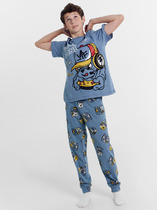 Эта детская пижама — сочетание комфорта, мягкости и практичного дизайна, идеально подходящее для сна и отдыха. Футболка свободного силуэта обеспечивает легкость и комфорт при движении, позволяя ребенку чувствовать себя непринужденно. Горловина круглой формы оформлена обтачкой из рибаны, что добавляет прочности и делает посадку комфортной. Втачные свободные рукава со слегка спущенной линией плеча создают расслабленный силуэт, а обработка низа рукавов и футболки в подгибку придает аккуратный вид. Шорты свободного силуэта дарят удобство и свободу движений, обеспечивая комфорт в течение всей ночи. Эластичный пояс гарантирует надежную посадку, а обработка низа шорт вподгибку делает изделие аккуратным и долговечным. Выполненная из натурального хлопка, пижама обладает мягкостью, воздухопроницаемостью и приятными тактильными свойствами, даря уют и комфорт ребенку. Отличный выбор для стильного и удобного отдыха!