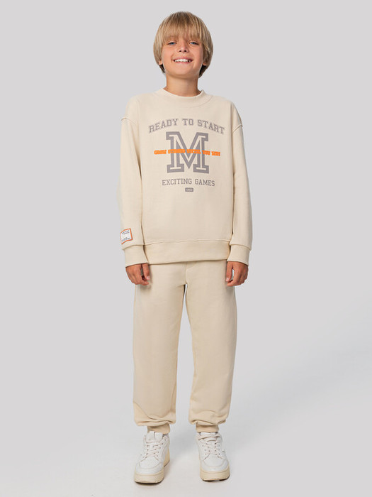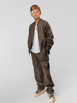 Свитшот прямого силуэта для мальчиков.  Горловина округлой формы. Плечо слегка спущено, рукав втачной длинный. По низу рукава отрезная манжета из рибаны. Пояс отрезной из рибаны, отстрочен. Брюки для мальчиков. Без бокового шва. Карманы в вытачке. Пояс отрезной с внутренней эластичной тесьмой 50RV. Пояс прострочен двумя отделочными строчками. Внутри в пояс втянут шнур. Низ брюк обработан манжетами из рибаны.