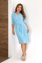 Комплект состоит из блузки и брюк, блузка на базе 592368. Силуэт блузки прямой и свободный, рукава длинные втачные, линия плеча немного спущена. Блуза с центральной застежкой на пуговицы, воротник стояче-отложной.Низ изделия и низ рукавов застрочен швом в подгибку.