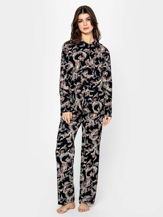 Совместные покупки Курган Женская одежда Пижамы, халаты — Mark Formelle КОМПЛЕКТ ЖЕНСКИЙ (БЛУЗКА, БРЮКИ) 592462 592462 узоры на черном 105