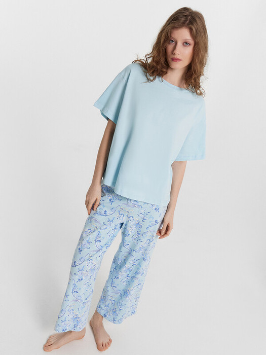 Бриджи свободные. Пояс цельнокроеный с втачной эластичной тесьмой 40RV, отстрочен. На поясе пришивная бейка, завязывающаяся в бант из основного полотна. Низ бридж обработан швом в подгибку.