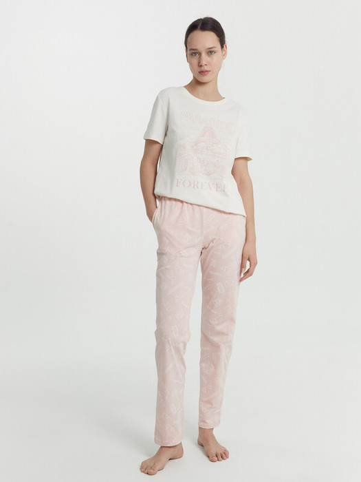 Совместные покупки Курган Женская одежда Пижамы, халаты — Mark Formelle КОМПЛЕКТ ЖЕНСКИЙ (ДЖЕМПЕР, БРЮКИ) 592511 592511 молочный +париж на