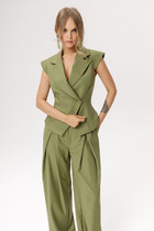 Брюки с посадкой на талии, прямые заужены к низу . Пояс цельнокроеный с резиной внутри. Низ брюк обработан швом в подгибку.
