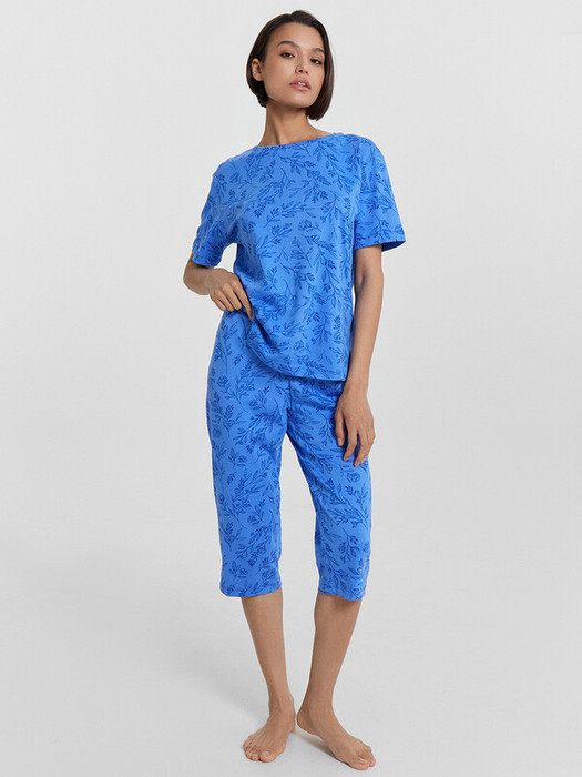 Совместные покупки Курган Женская одежда Пижамы, халаты — Mark Formelle КОМПЛЕКТ ЖЕНСКИЙ (ФУТБОЛКА, БРИДЖИ) 592370 592370 веточки на лазур