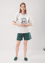 Очаровательная пижама женская с бриджами и укороченной футболкой — это идеальный комплект для комфортного отдыха и сна. Модель выполнена из хлопка, который обеспечивает мягкость, воздухопроницаемость и заботу о чувствительной коже. Укороченная футболка свободного кроя и бриджи с эластичным поясом дарят полную свободу движений, а нежные швы предотвращают натирание.