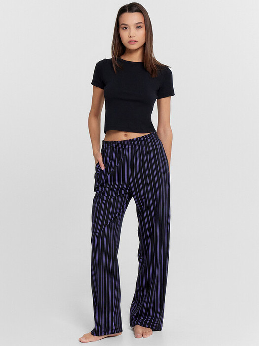 Брюки с посадкой на талии свободного силуэта. Пояс цельнокроеный с резиной внутри 40RV. В боковых швах карманы. Низ изделия застрочен швом в подгибку.